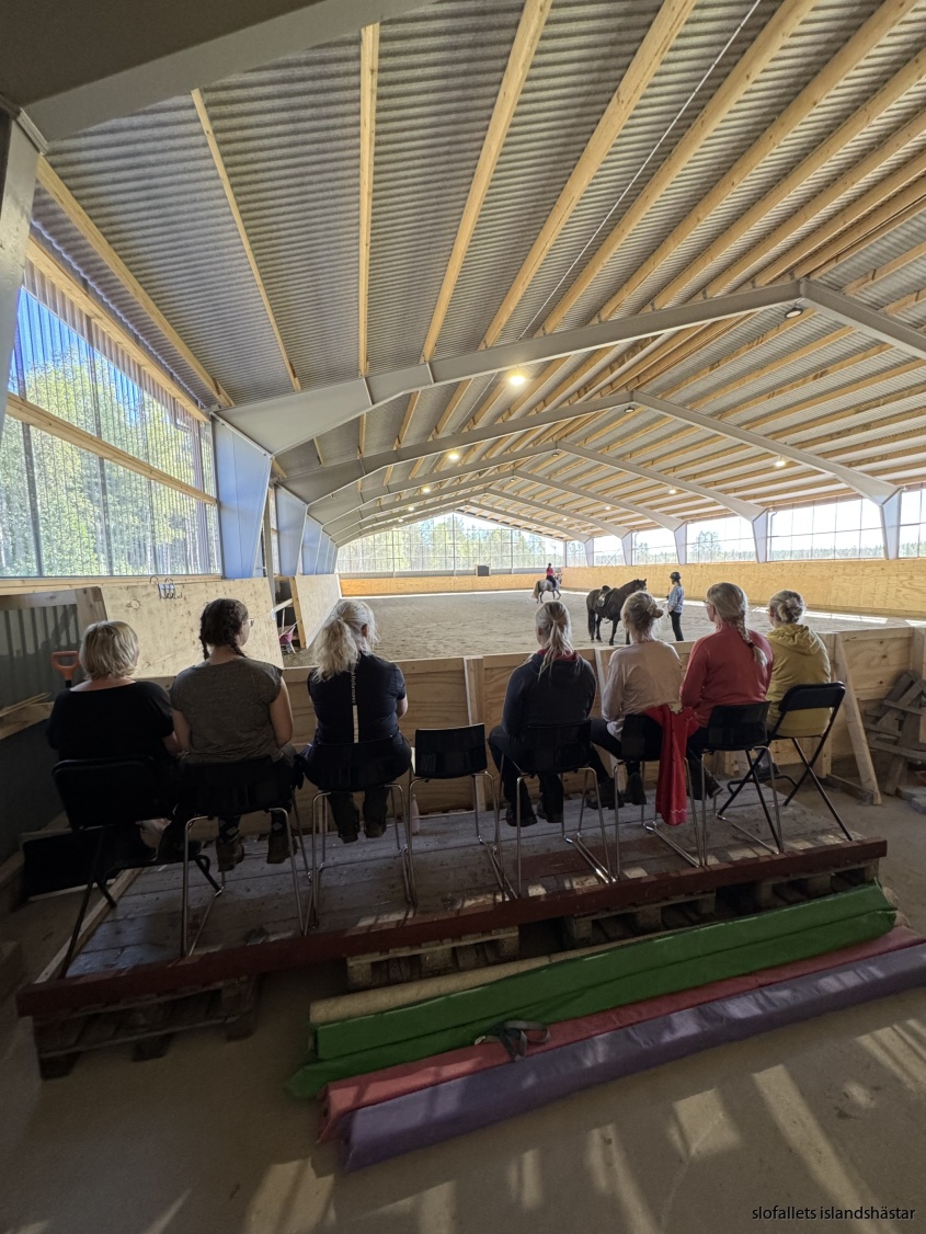 Ni rider ett pass i ridhuset för att se vilken kunskapsnivå ni ligger på och så att hästarna passar alla, om Amanda ser att det behöver göras hästbyten så blir det gjort för att det skall bli så bra för våra hästar och deltagare.