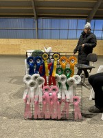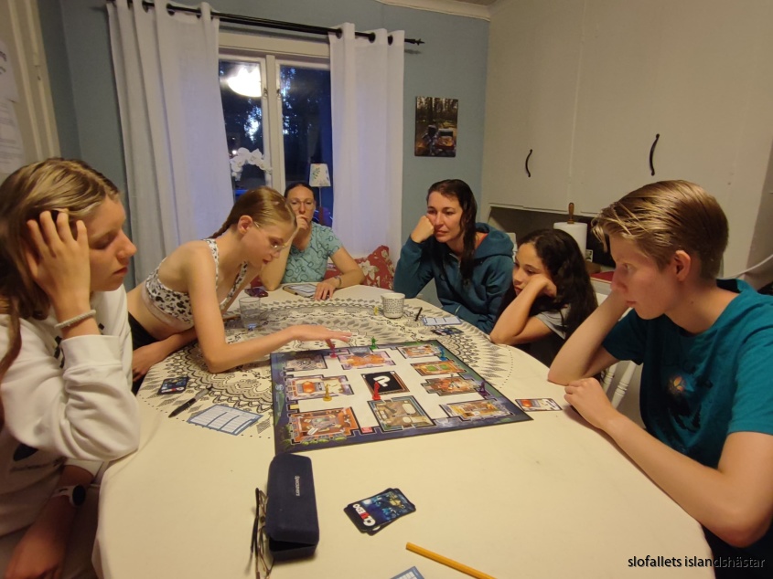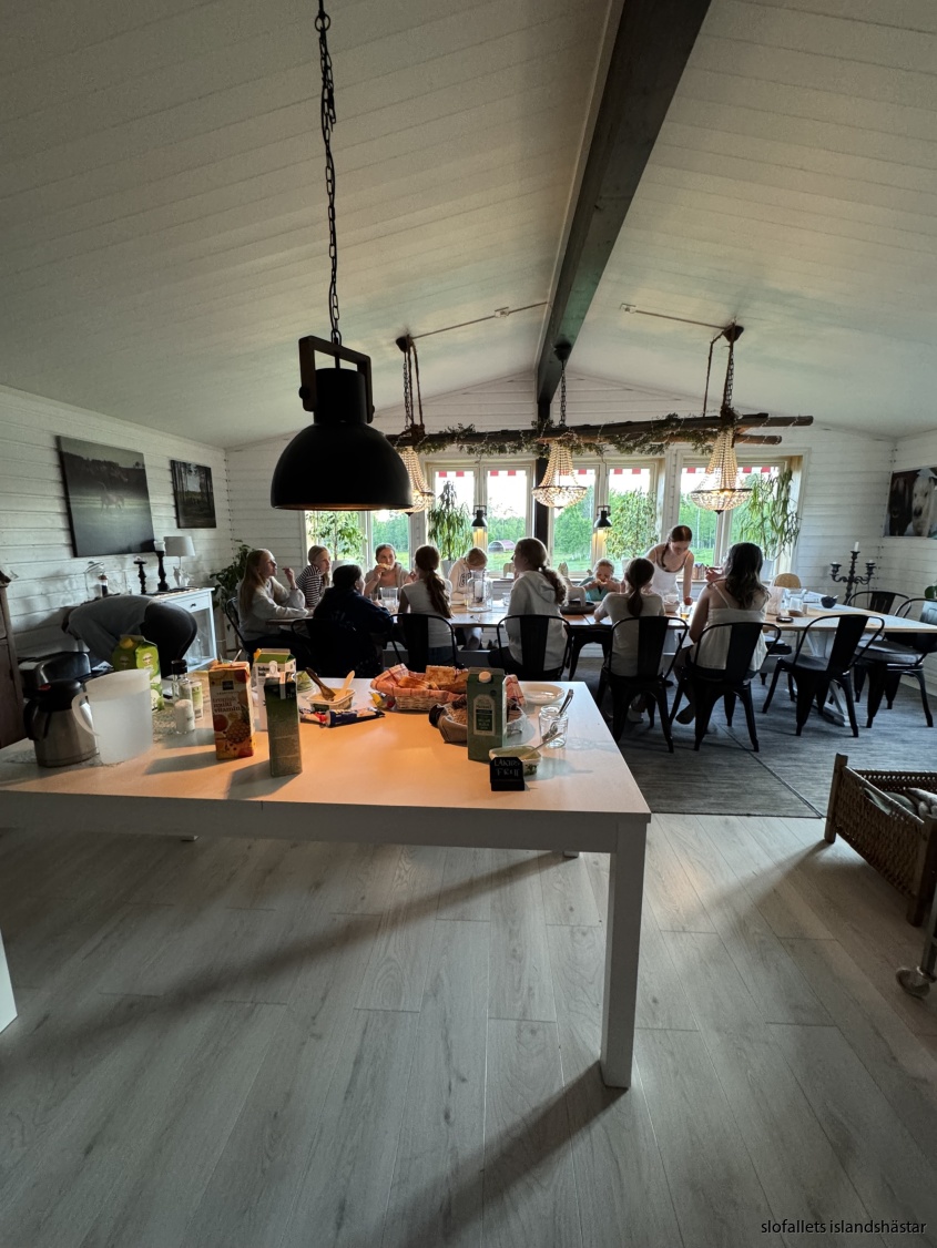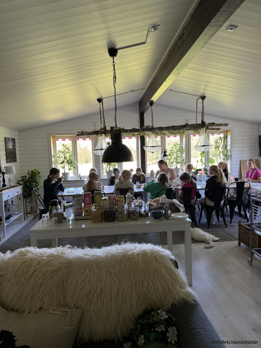 Vi träffas sedan vid mathörnan vi går igenom information och regler. Vi fikar vi och delar ut hästarna!